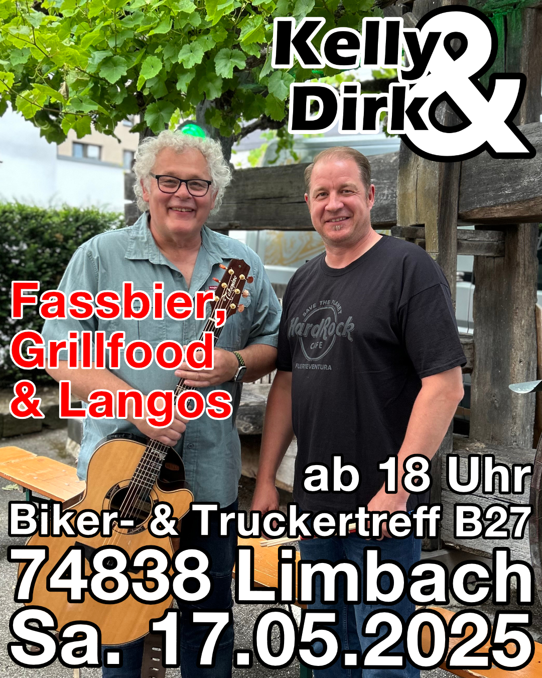 Kelly&Dirk spielen wieder im schönen Waldparkplatz in Limbach. schaut vorbei, es gibt Leckeres vom Grill, Tango und Fassbier.